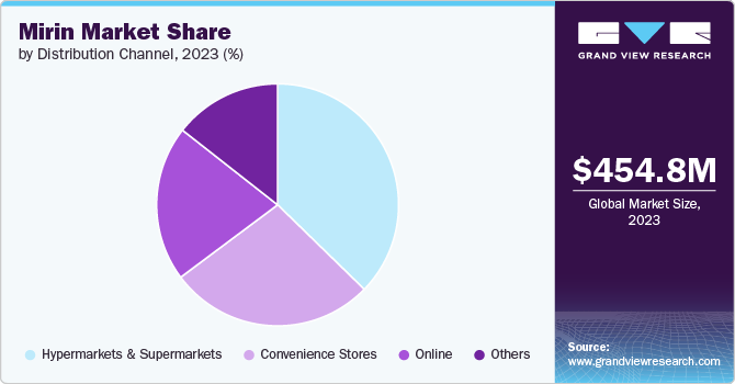 - Based on distribution channels, sales through supermarkets & hypermarkets accounted for a revenue share of 37% in 2023. Supermarkets and hypermarkets offer a one-stop shopping experience where consumers can find a wide range of mirin brands and flavors all under one roof. This convenience factor saves time and effort for consumers who prefer to complete their shopping in one trip rather than visiting multiple stores.