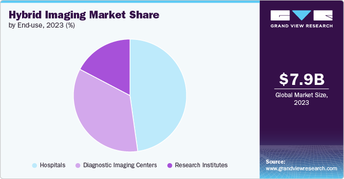 - The PET/CT systems segment accounted for the largest market share of 32.3% in 2023. Technical advancements in PET imaging for advanced diagnostics applications and oncology and rising demand for PET analysis in radiopharmaceuticals are expected to drive market growth.
