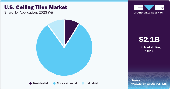 - Based on material, the mineral wool segment dominated the market with a revenue share of 42.9% in 2022. The use of mineral wool in ceiling tiles leads to the development of their aesthetic designs, enhances their fire resistance, and results in their effective thermal insulation. Moreover, mineral wool ceiling tiles are more economical than product types developed from other materials. This also contributes to the demand for the former in the U.S