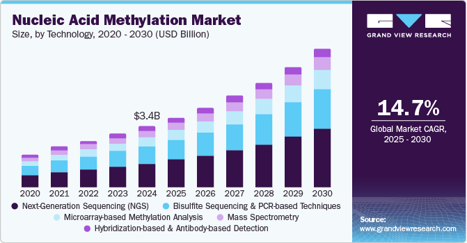 The global nucleic acid methylation market is anticipated to reach USD 7.77 billion by 2030 and is projected to grow at a CAGR of 14.69% during the forecast period, according to a new report by Grand View Research, Inc. The market is driven by increasing demand for early disease detection, advancements in sequencing technologies, and growing adoption of precision medicine. Rising research in epigenetics, cancer diagnostics, and neurological disorders is fueling market expansion. AI-driven bioinformatics, cost-effective NGS, and mass spectrometry are enhancing data analysis and efficiency. In addition, increasing investments from pharmaceutical and biotech companies, along with government funding for epigenetics research, are accelerating innovation. Expanding applications in drug discovery, personalized medicine, and non-invasive diagnostics further contribute to market growth.